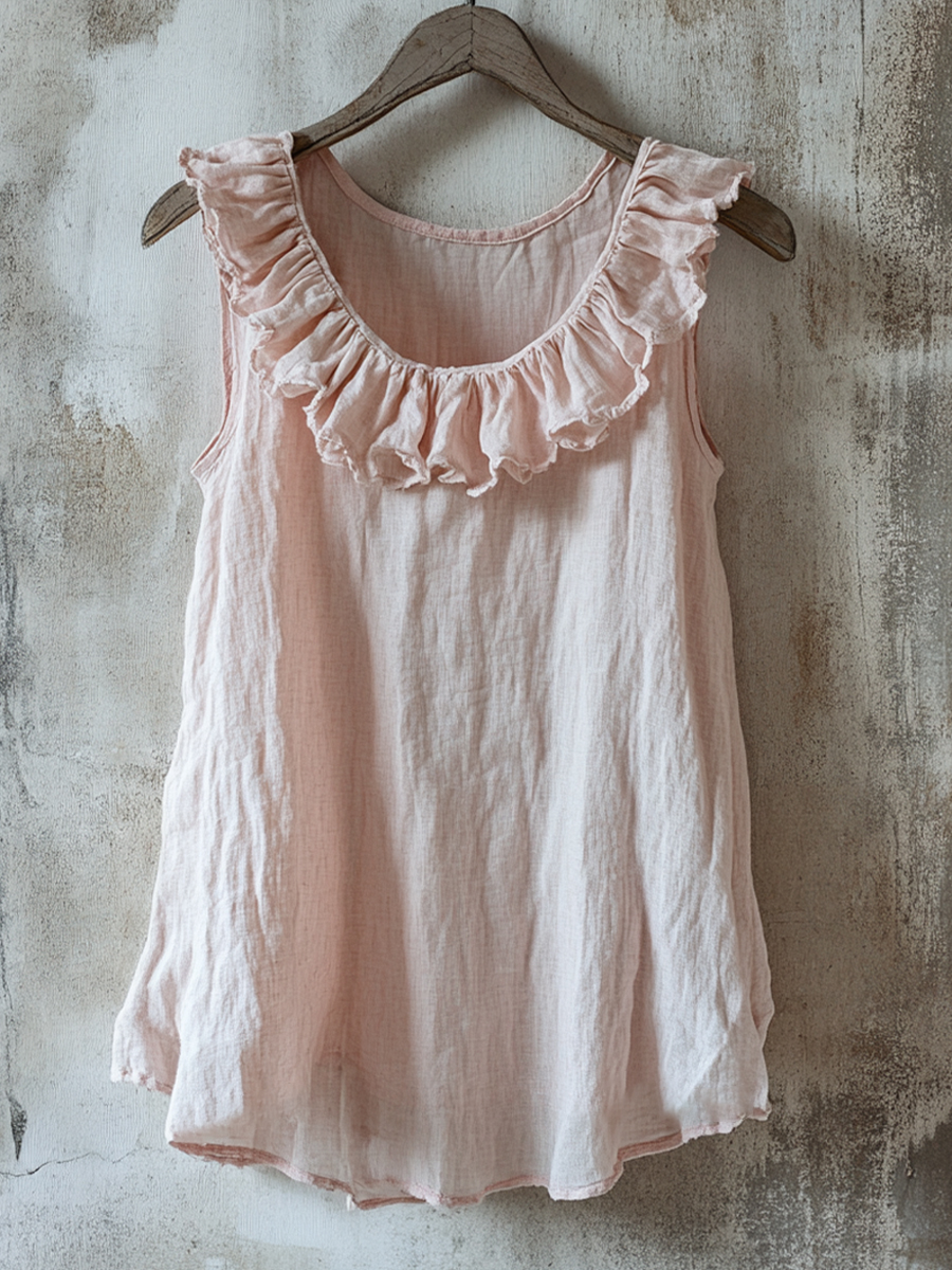 Women's Simple Lace Patchwork Linen Tank Top