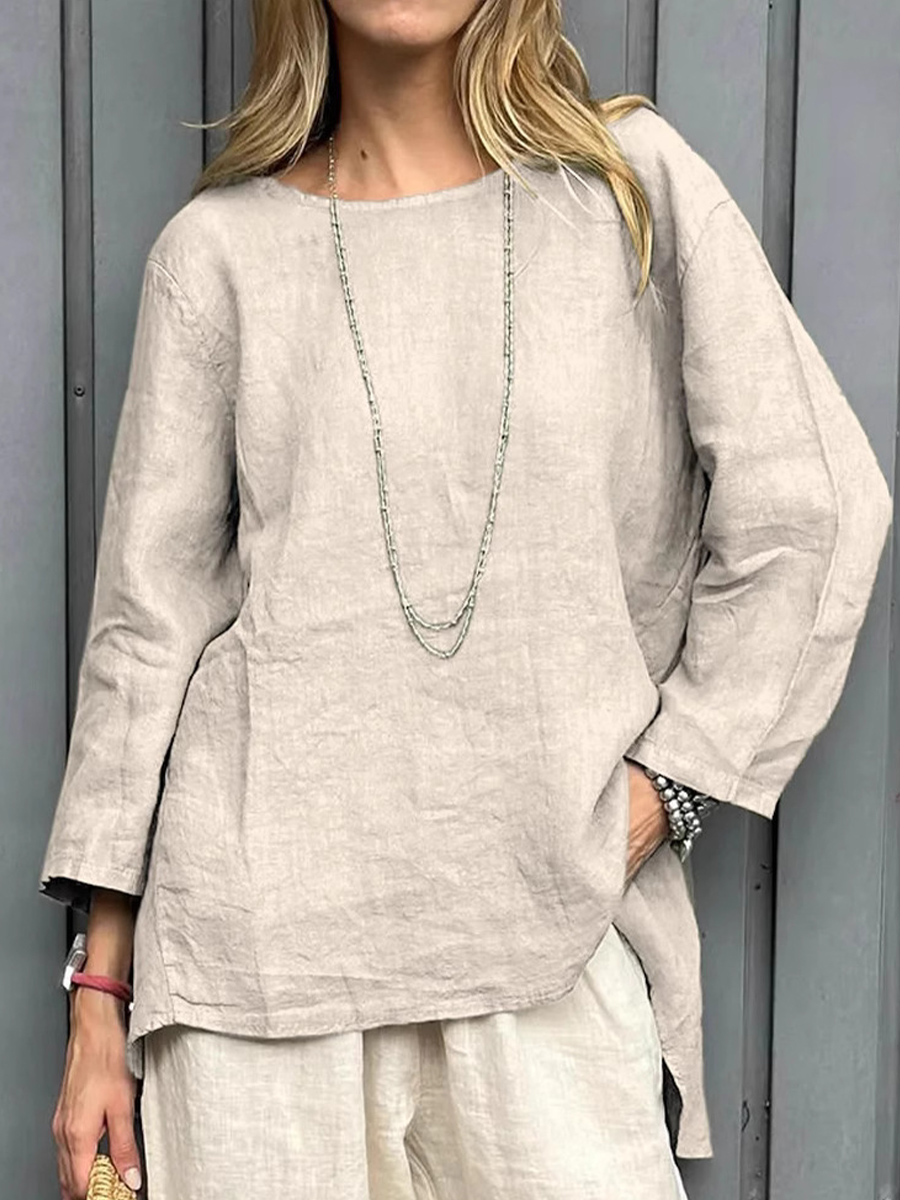 Women's Simple Solid Color Linen V-Neck Shirt