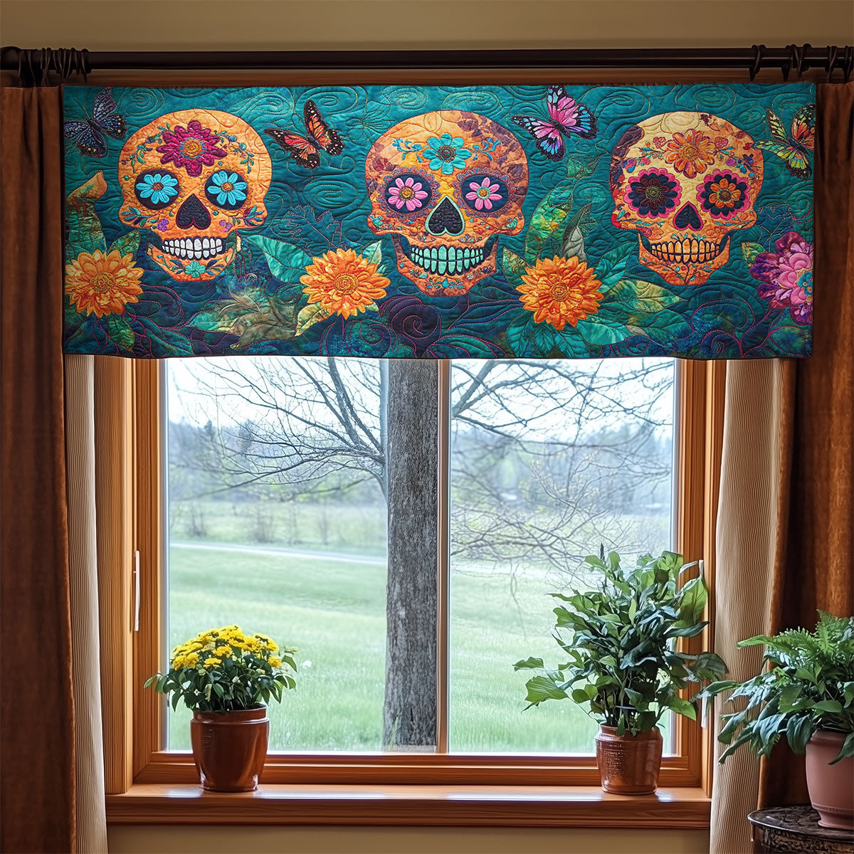 Skull Flower WX0905045CL Quilted Valance