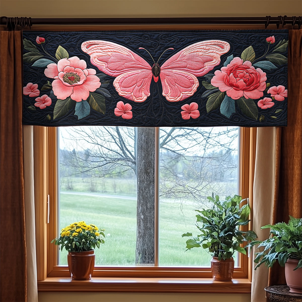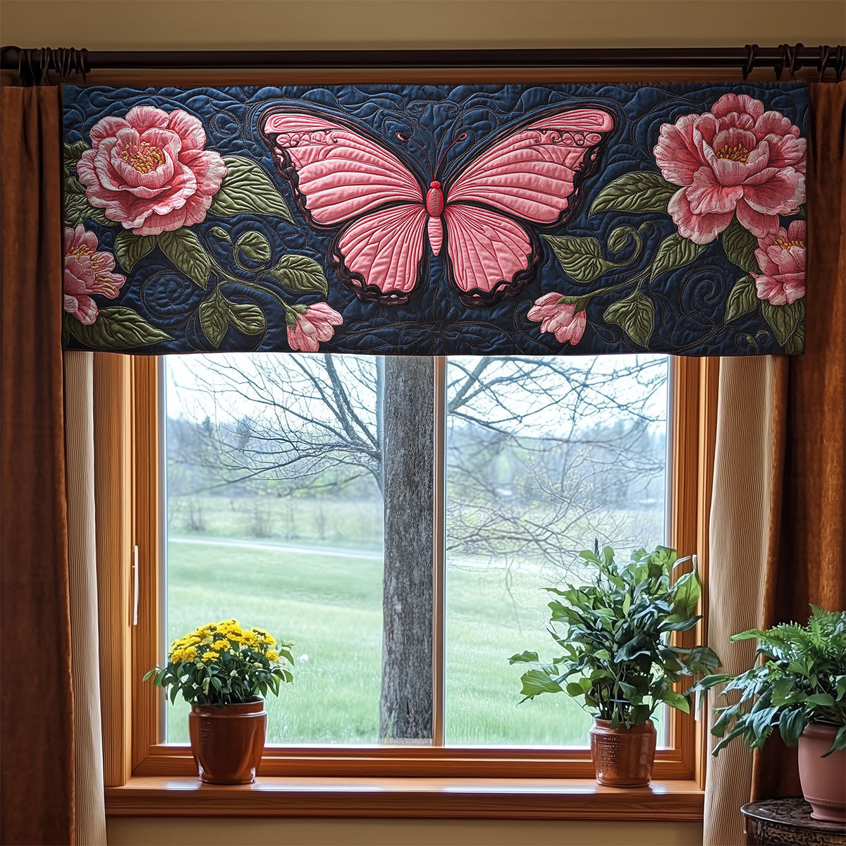 Pink Butterfly WX0905040CL Quilted Valance