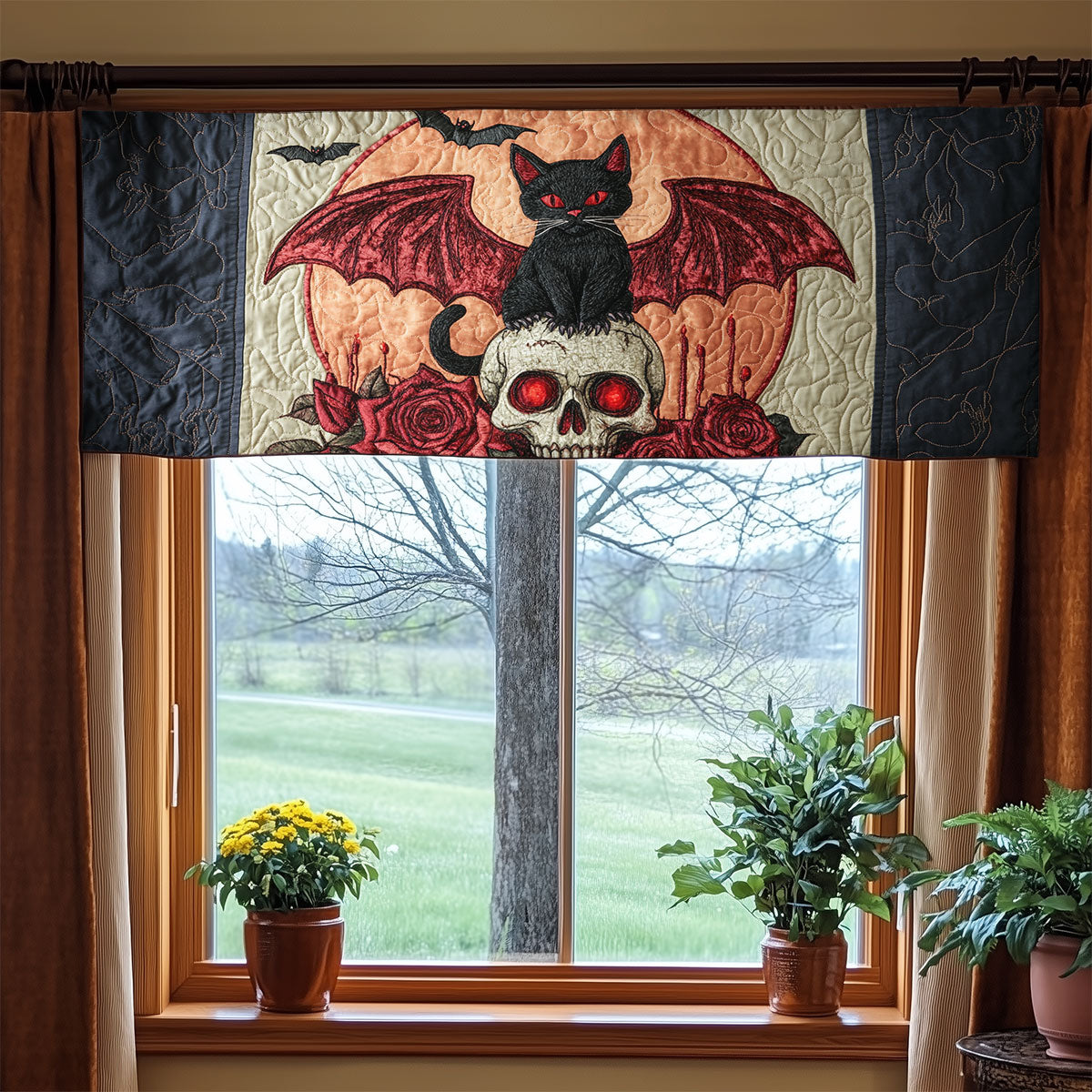 Mystic Skull Cat WX0905038CL Quilted Valance