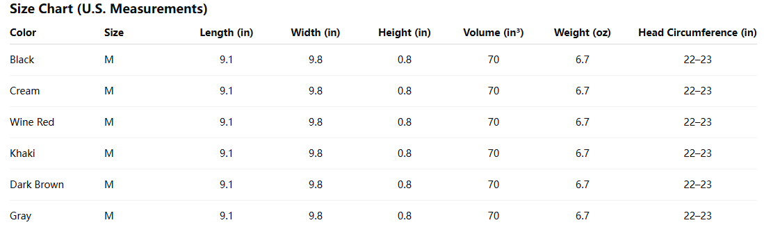• Size: M (fits head circumference 22"–23" / 56–58 cm)