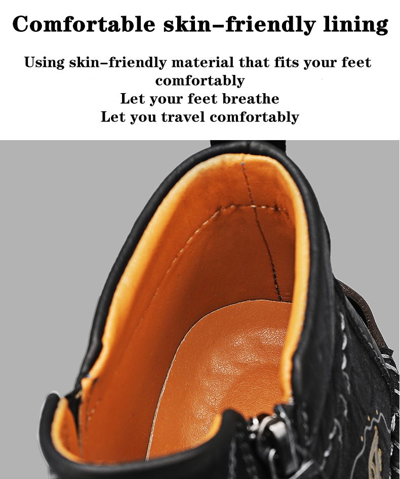 (⏰Last Day 70% OFF🔥)Men's Top-Quality Motorcycle Boots Hand-Stitched Genuine Leather Boots-Wide Toe, Waterproof, Anti-Slip, Anti-Sprain,Suitable for Work, Driving, Hiking
