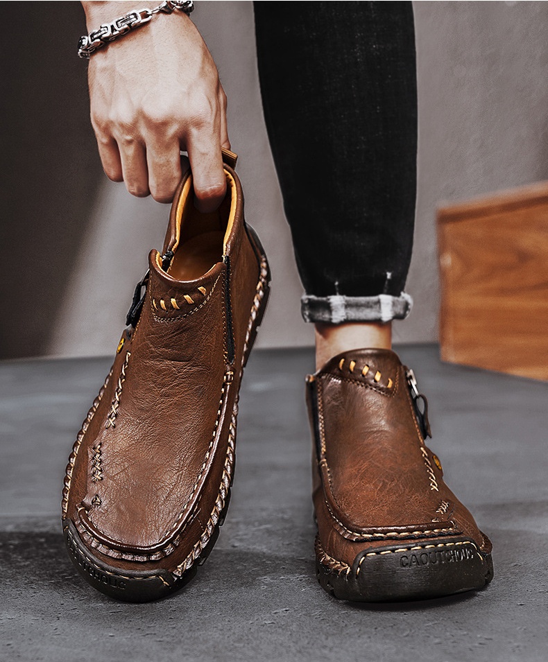 These men's casual leather shoes are the perfect combination of style and function. The classic design features a mid-cut ankle boot style with a look inspired by moccasins. The stylish and simple silhouette makes these shoes easy to pair with a variety of outfits, whether it's jeans, chinos or suits. Whether you're going for a casual day or a more formal occasion, these shoes will add a touch of sophistication to your look.