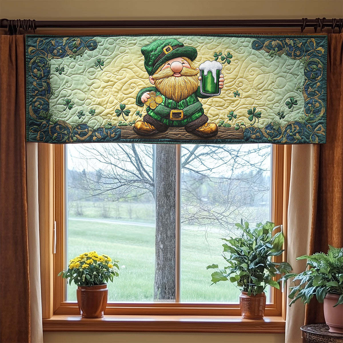 Shamrock Gnome Cheers WN1407077CL Quilted Valance